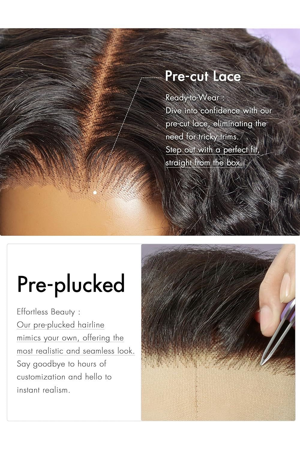 - Matériau des cheveux : cheveux vierges cambodgiens bruts 10A.